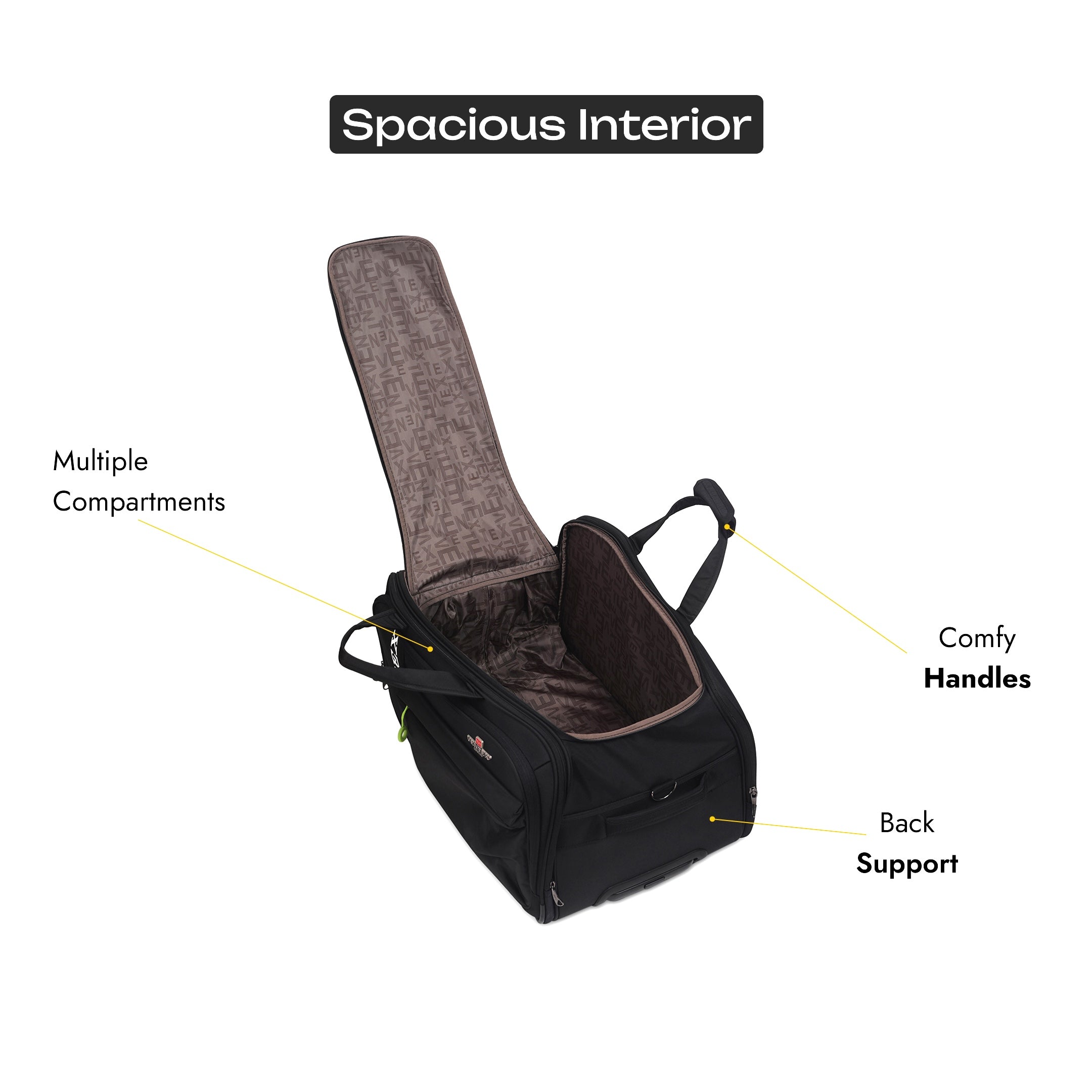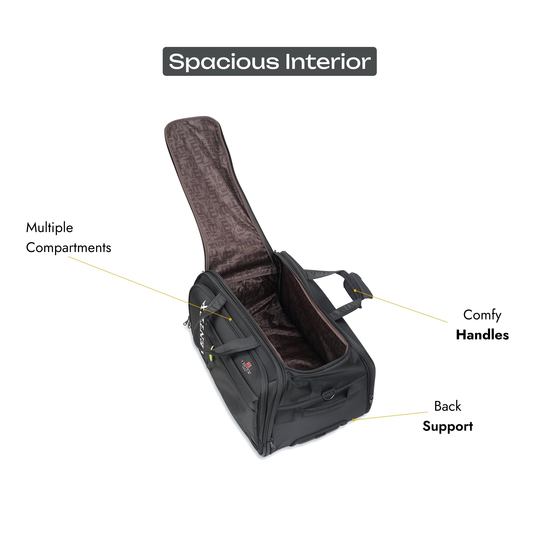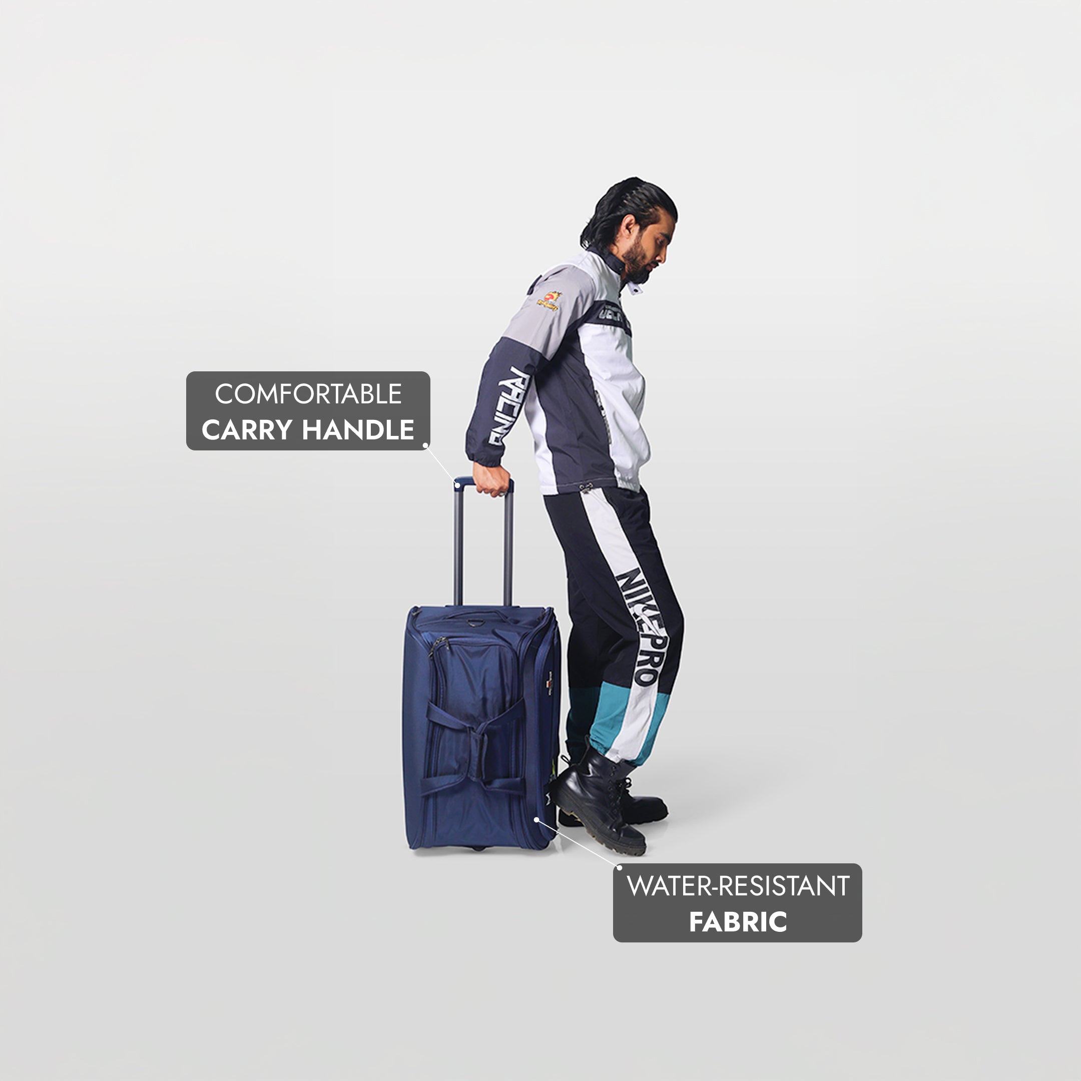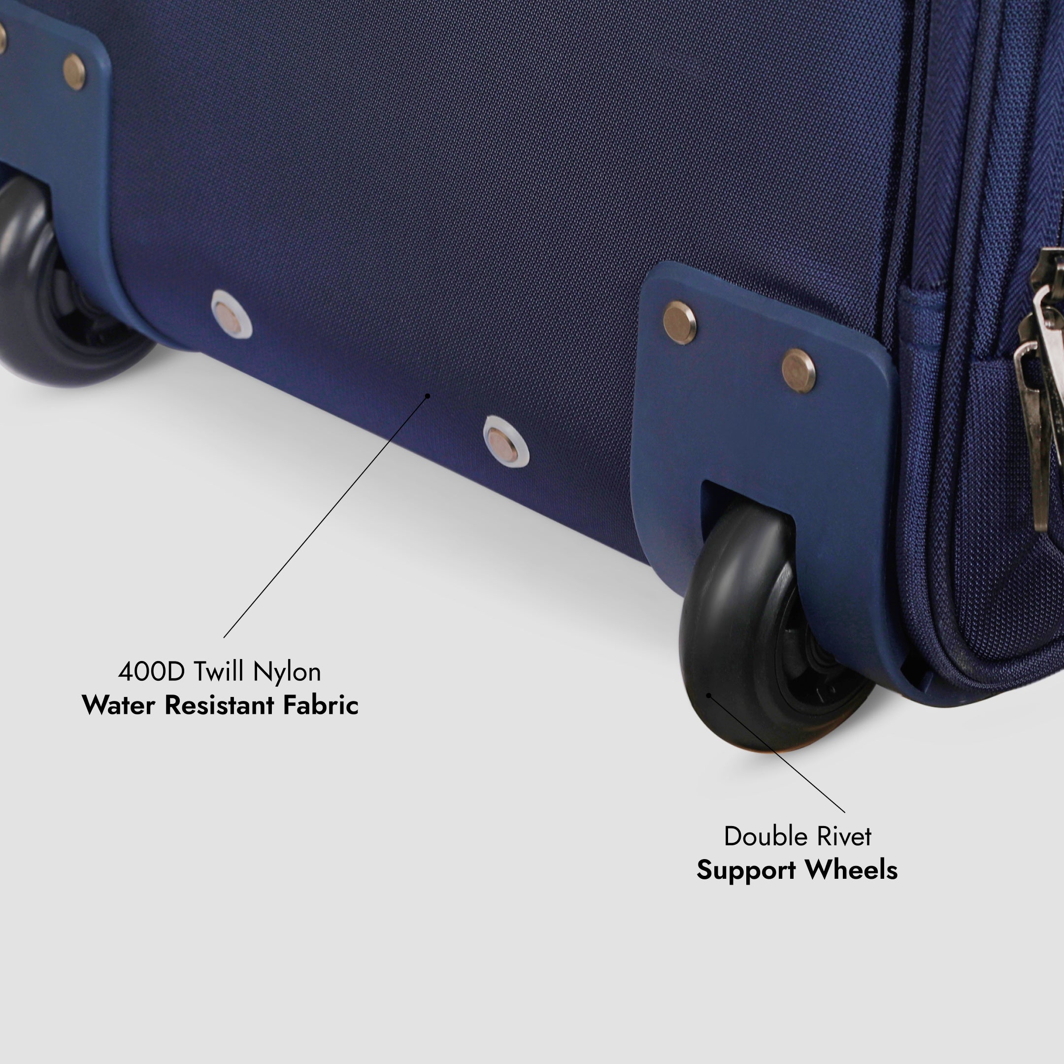 Constructed using premium 840D twill-nylon fabric, known for its strength, flexibility, and resistance to abrasions. It adds a sleek finish while standing up to the rigors of travel.