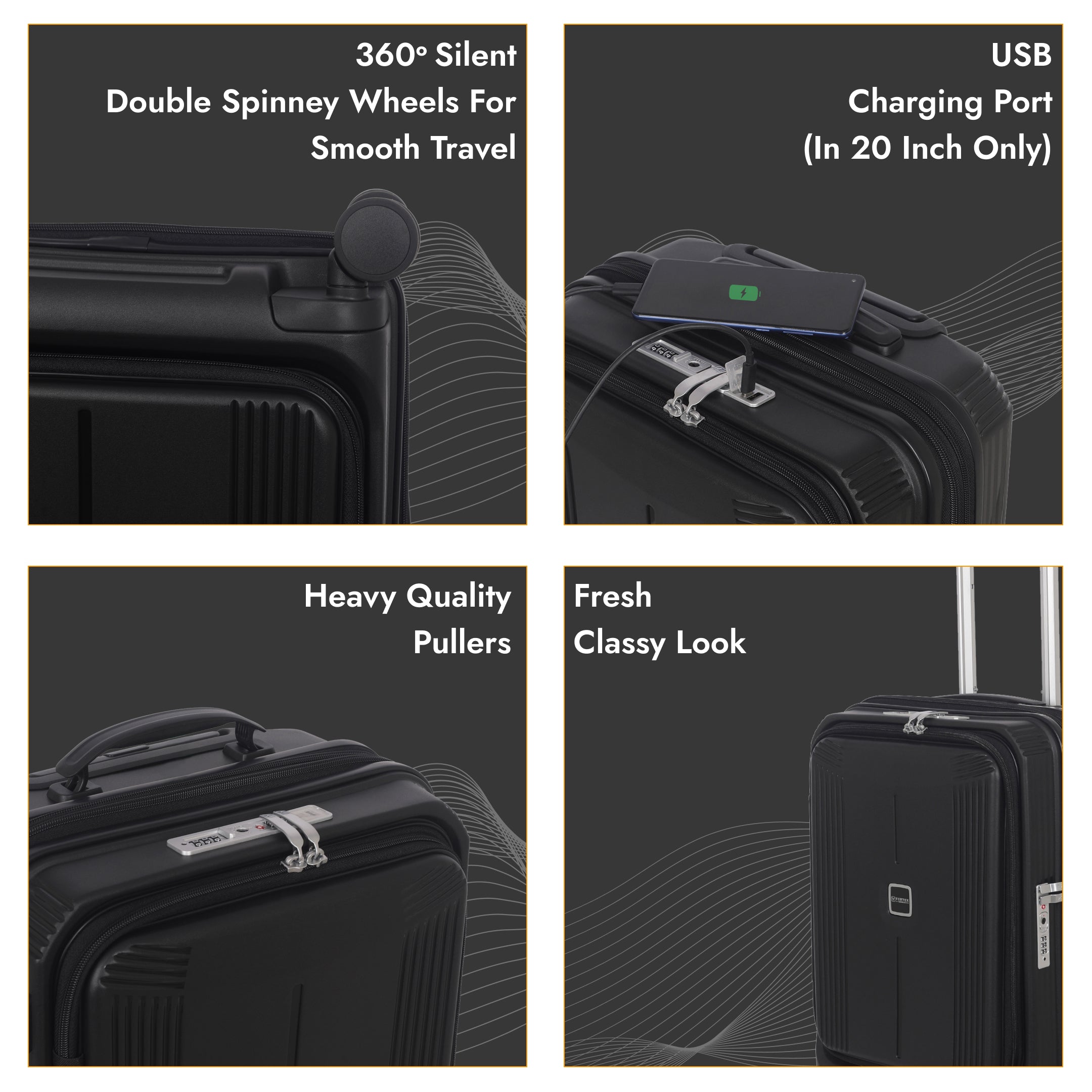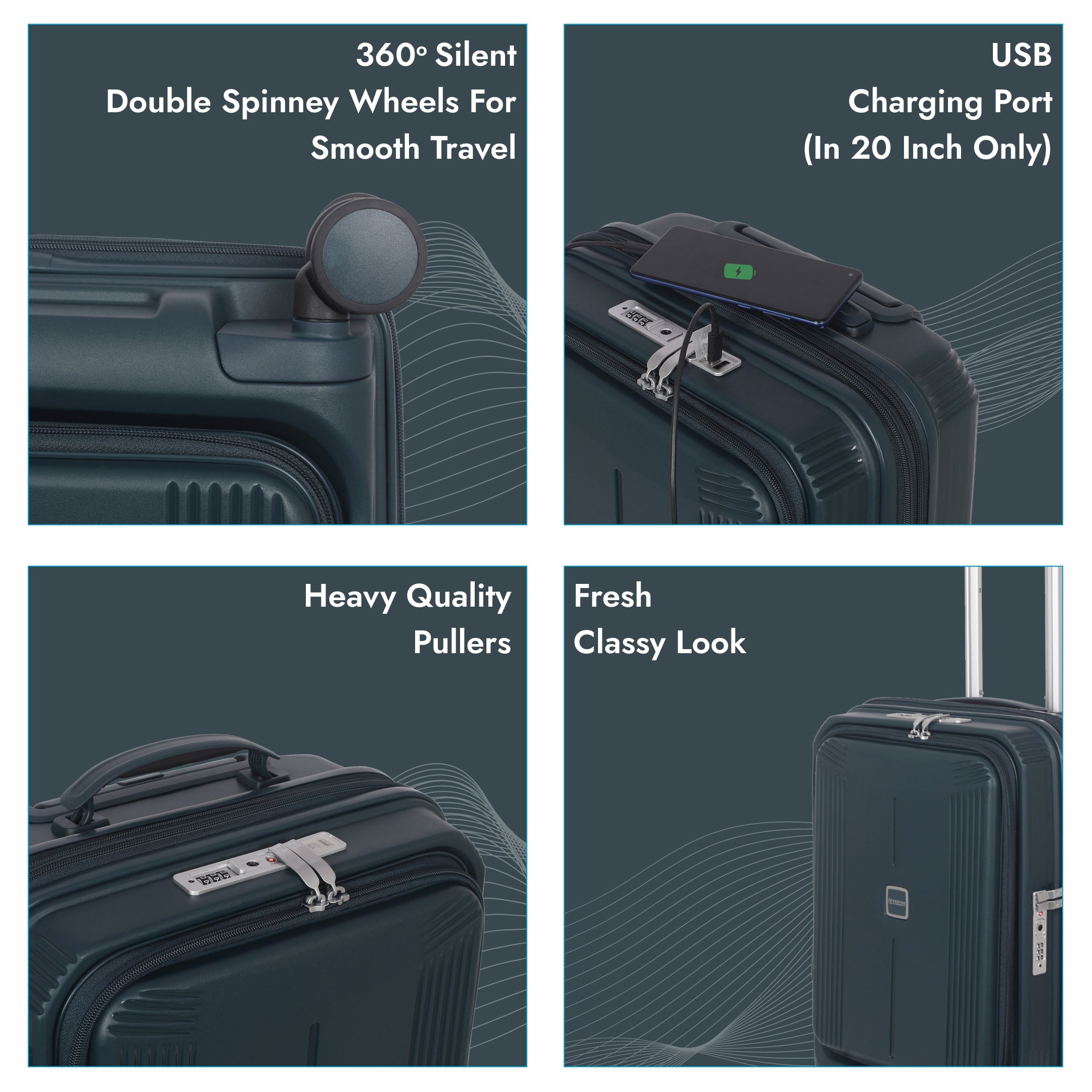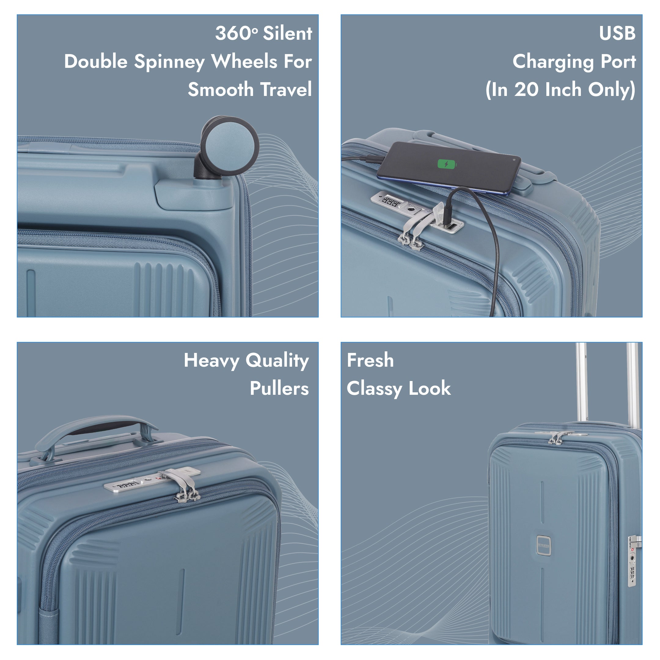 Enjoy seamless movement with four twin 360° spinner wheels that provide stability and quiet operation on all types of surfaces—from glossy airport floors to uneven streets.