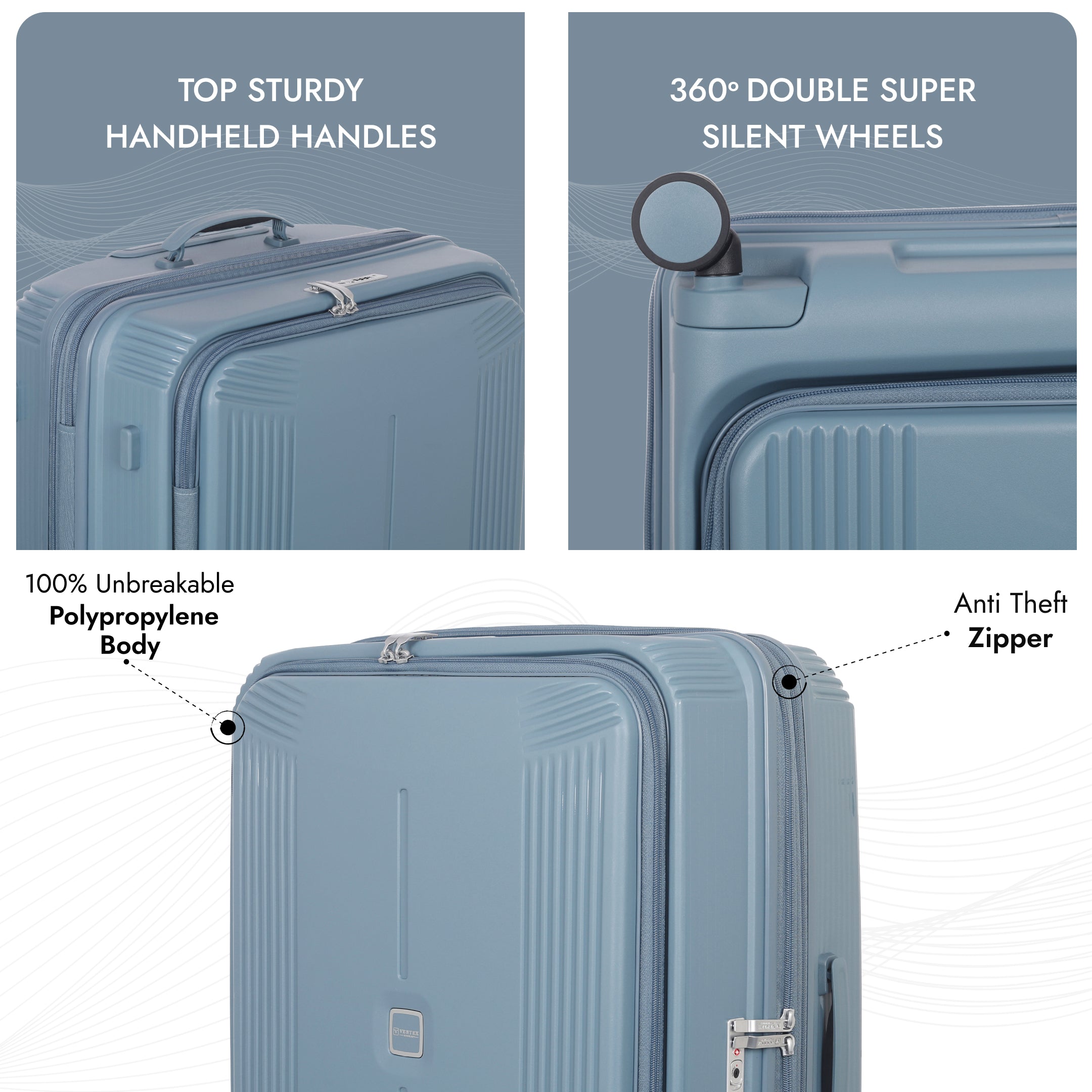 THE DOUBLE DECKER 2.0 is the ultimate Polypropylene trolley bag built for modern travel needs. Made from 100% polypropylene, it offers unmatched durability, a lightweight frame, and a sleek design. With features like double TSA locks, anti-theft zippers, an expandable body, and a complimentary laptop sleeve in the 20” cabin size, it’s perfect for secure and organized journeys.