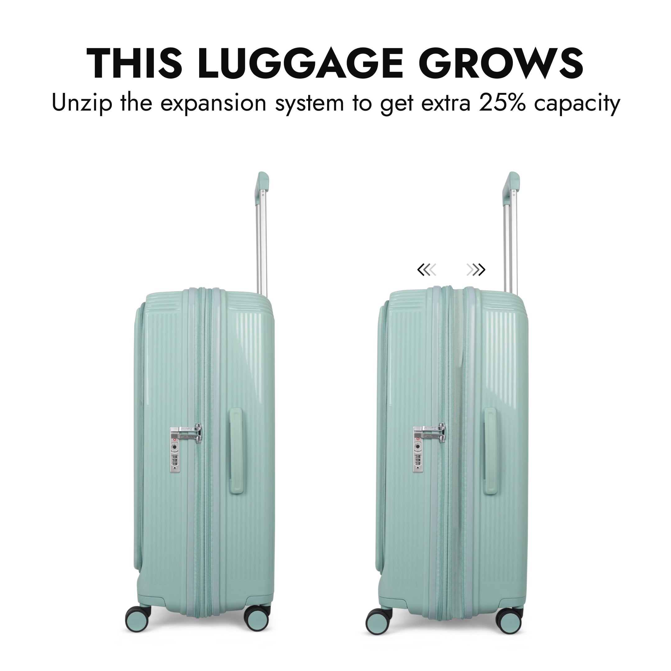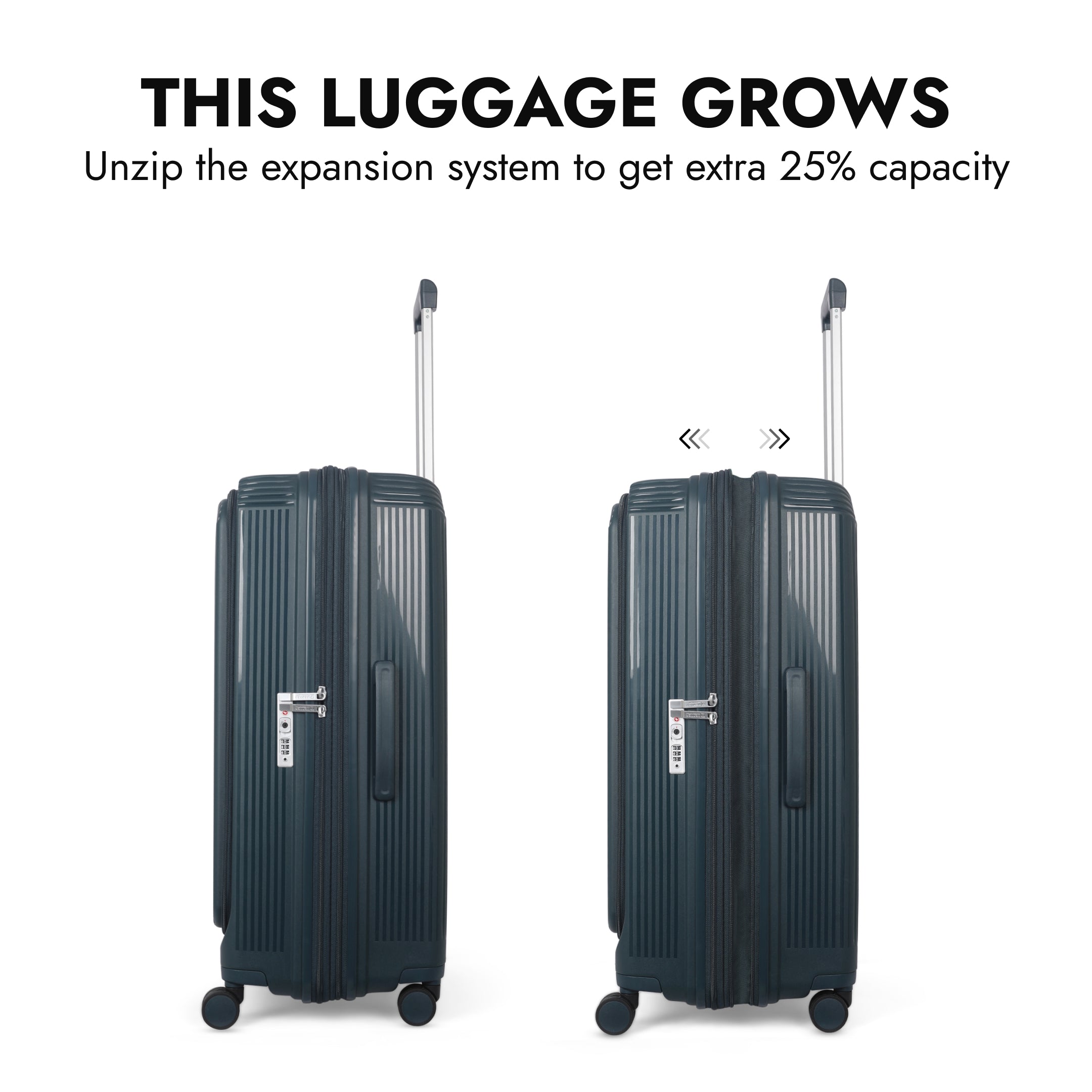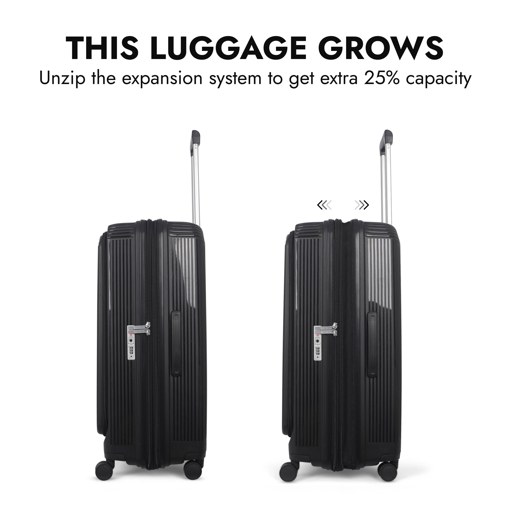 Run out of room? Just unzip to activate the expandable section and enjoy up to 25% more space—perfect for return trips or last-minute packing.